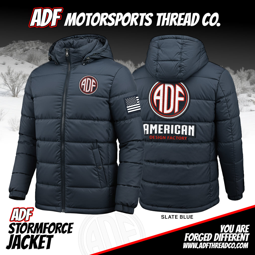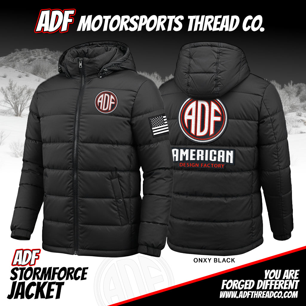 ADF STORM FORCE JACKET Sporting dual ADF embroidery logo and proud American flag patch - This lineup is built for the road and worn on the streets. The Storm Force Jacket is engineered with a precision fit, rugged warmth, and weather-defying breathability that makes it the ultimate shield against the elements. Tough enough to take on the grind yet built for all-day comfort when the storm hits. Durability and performance are forged into every stitch—this is what comfort and warmth feels like in the storm.